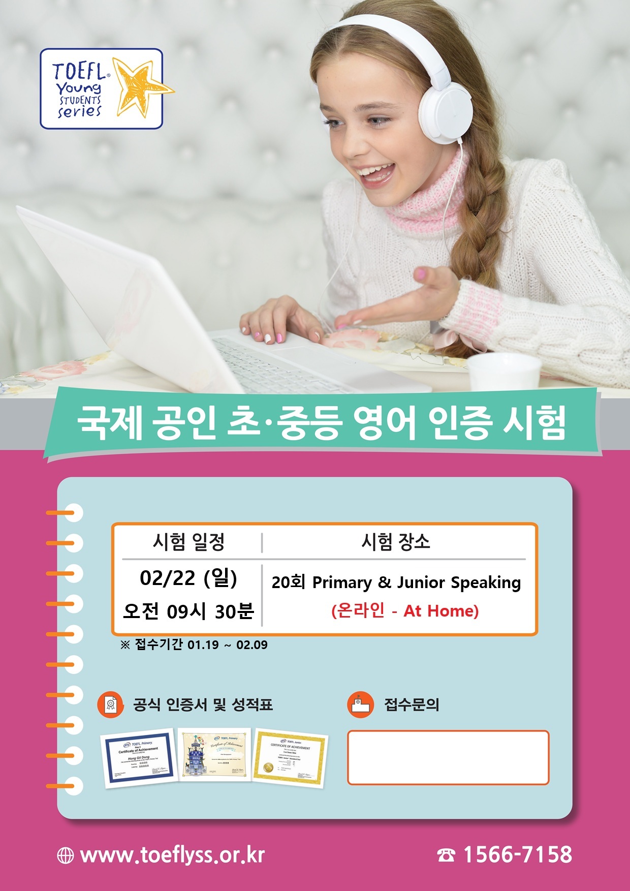 TOEFL Primary/Junior Speaking 정기시험(20회-At Home) 관련하여 안내 드립니다.