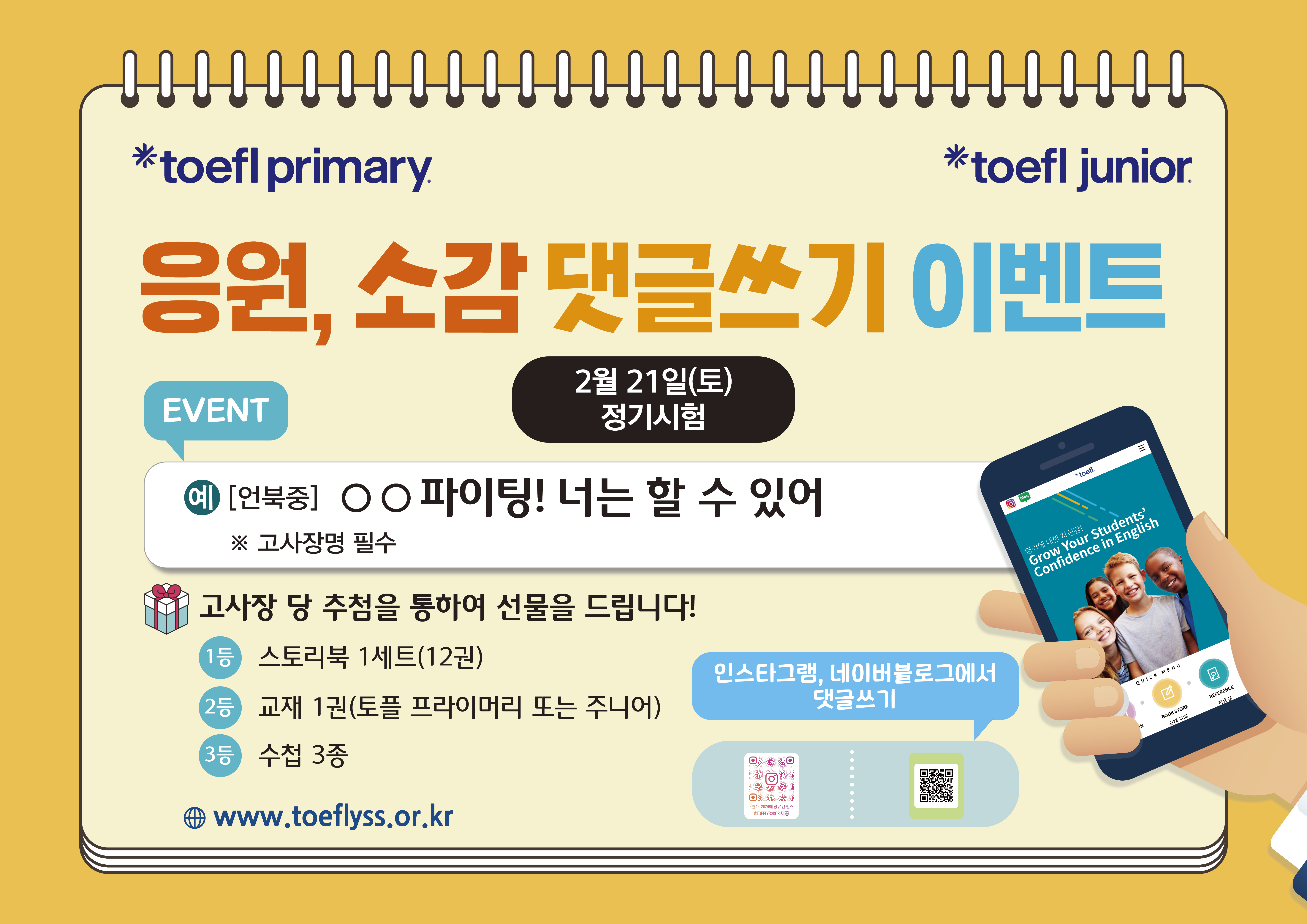 2026년 2월 21일 (토) 69회 정기시험 응원, 소감 댓글쓰기 이벤트를 진행합니다.